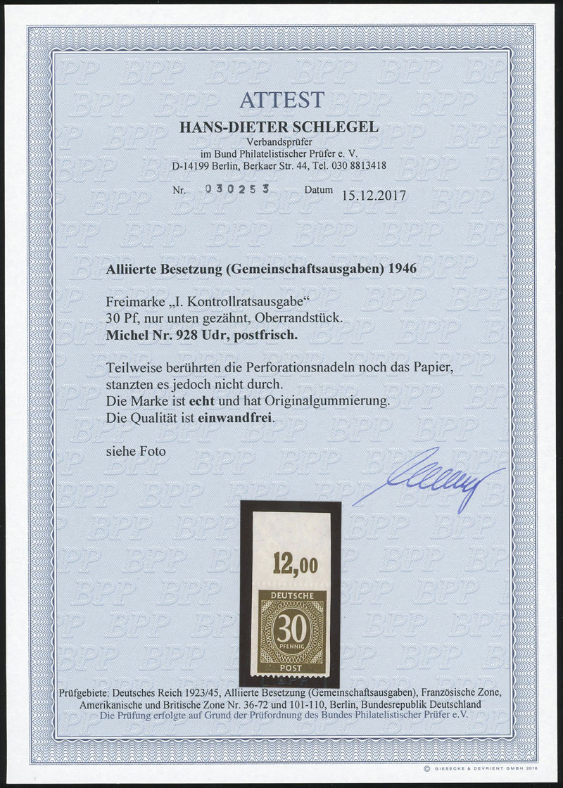 Sehr seltene Zähnungsabart 'nur unten gezähnt'
