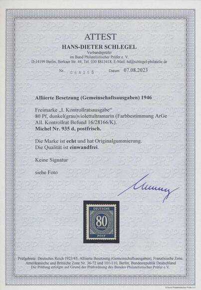 Farbgepr. Arge Bernhöft mit Fotobefund und gepr. Schlegel mit Fotoattest