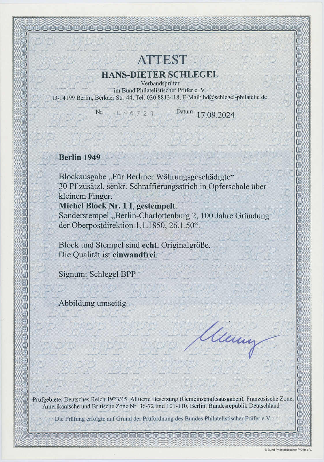 Michel-Katalogwert: -,--, mind. 3.500,-- wie Block 1 II und Block 1 III