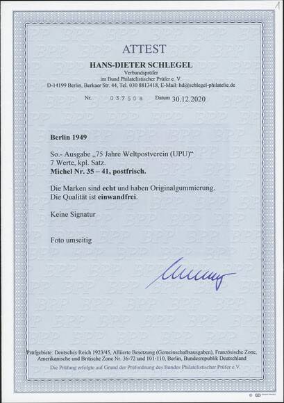 Gelegenheit zum Erwerb einer der Spitzensätze der Berlin-Ausgaben in BPP-attestierter Kabinettqualität!