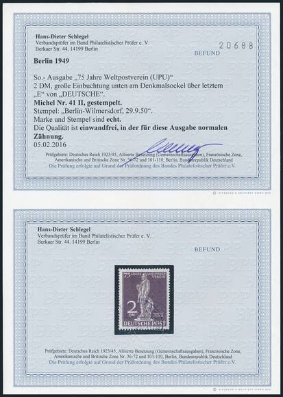 Mit gutem Plattenfehler 'große Einbuchtung unten am Denkmalsockel über letztem E von DEUTSCHE'