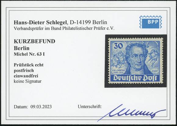 BERLIN 1949 MiNr. 63 I