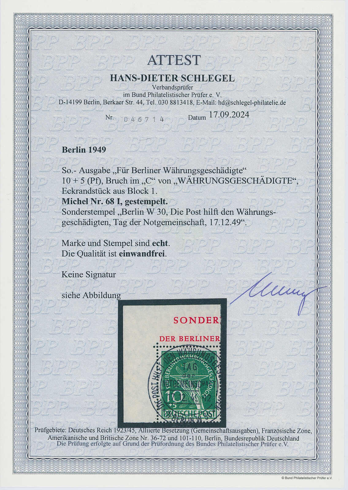 1949, Währungsgeschädigte, 10 Pfg. aus Block 1 mit Blockeckrand