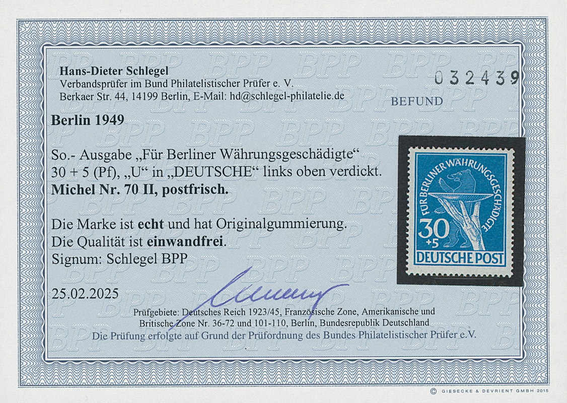 Vorsignatur und gepr. Schlegel mit Fotobefund