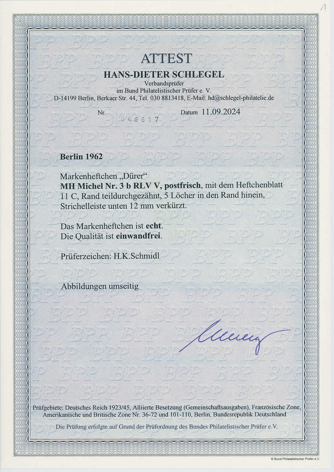 Vorsignatur Schmidl und gepr. Schlegel mit Fotoattest