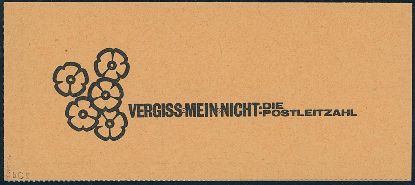 Postfrisches Markenheftchen mit Reklamen "Postgebühren Stand 1.7.1962" und "Vergiß mein nicht"