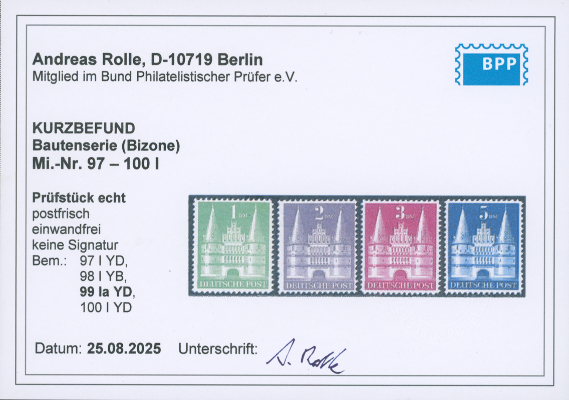 Tadellos postfrisch, Fotokurzbefund Rolle