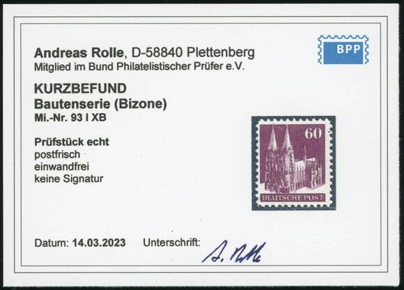 Tadellos postfrisch, Fotokurzbefund Rolle