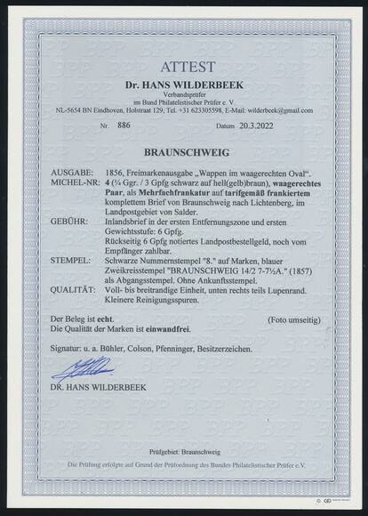 Div. Altsign. und gepr. Dr. Wilderbeek mit Fotoattest