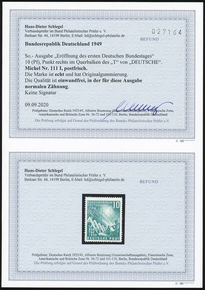 Sehr guter und seltener Plattenfehler 'Punkt rechts im Querbalken des T in DEUTSCHE'