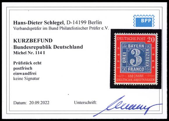 BRD 1949 MiNr. 114 I guter Plattenfehler
