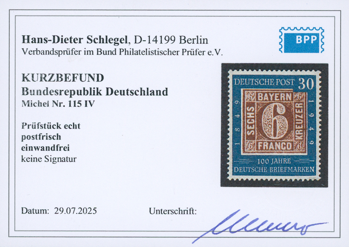 Tadellos postfrisch, Fotokurzbefund Schlegel