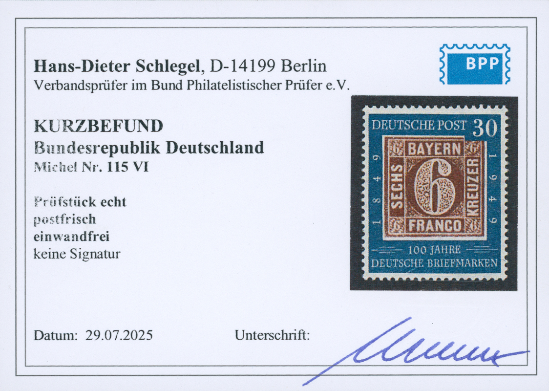 Tadellos postfrisch, Fotokurzbefund Schlegel
