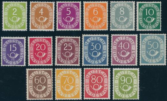 1951/1952, Posthorn, 16 Werte komplett