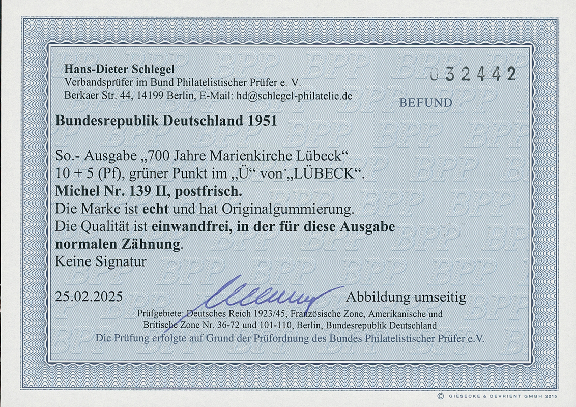 Mit sehr gutem Plattenfehler 'grüner Punkt im Ü von LÜBECK'