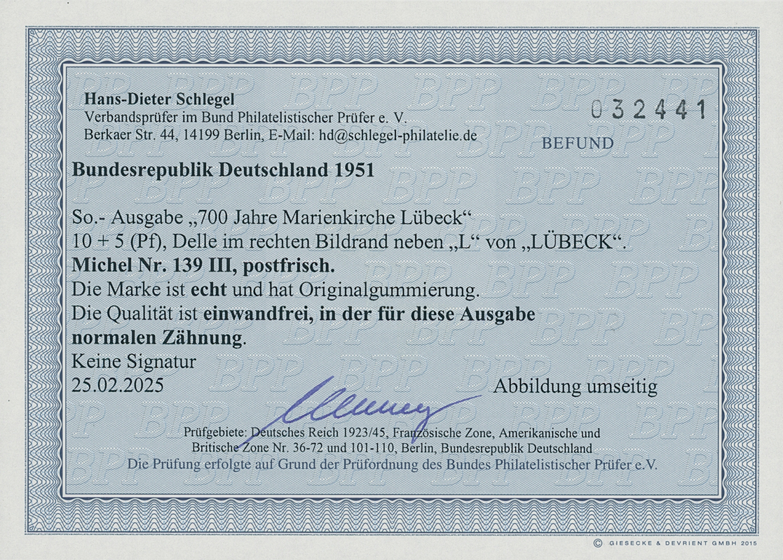 Mit gutem Plattenfehler 'Delle im rechten Bildrand neben dem L von LÜBECK'