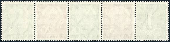 Waagerechter, postfrischer Fünferstreifen aus Markenheftchenbogen, ungefaltet