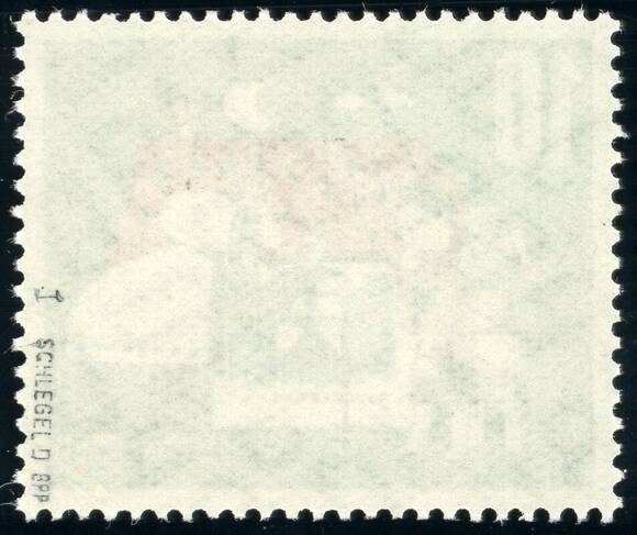 Mit gutem Plattenfehler 'untere Linie des dritten Dachziegels von links unterbrochen'