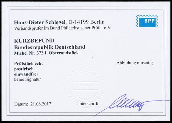 Tadellos postfrisches Kabinettstück vom Oberrand