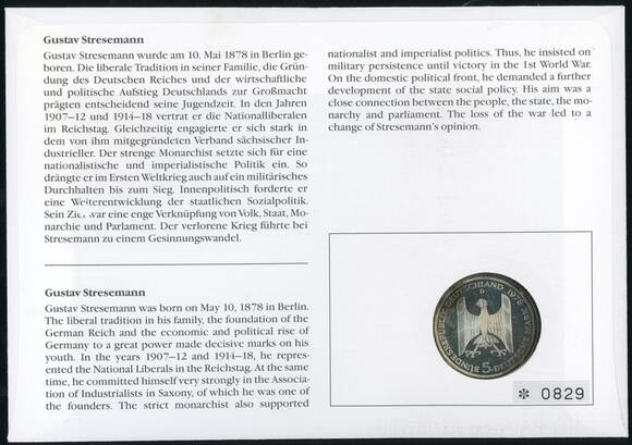 BRD 1978/1991 Numisbrief Gustav Stresemann
