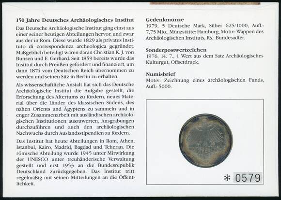 BRD 1979/1985 Numisbrief Archäologische Kultur