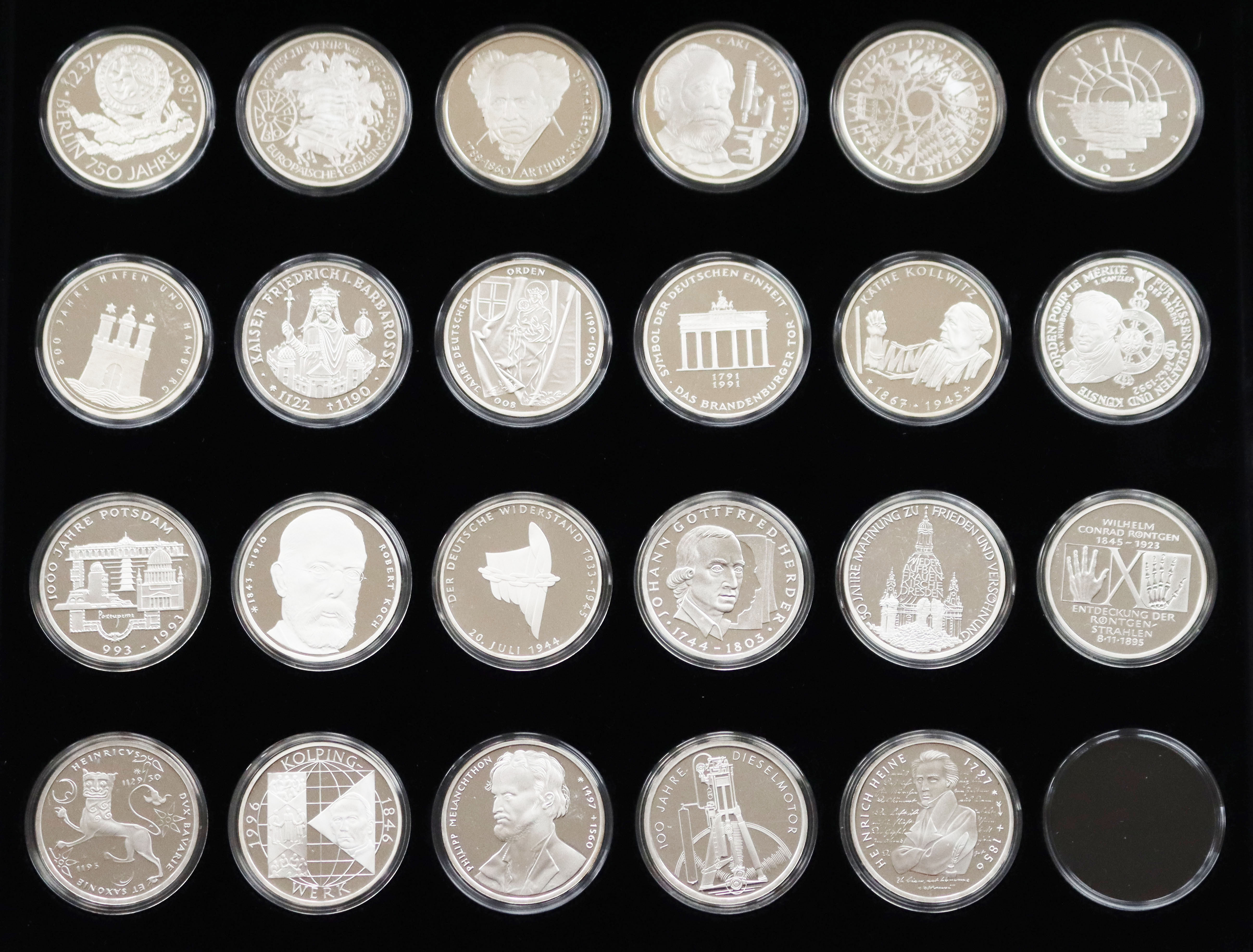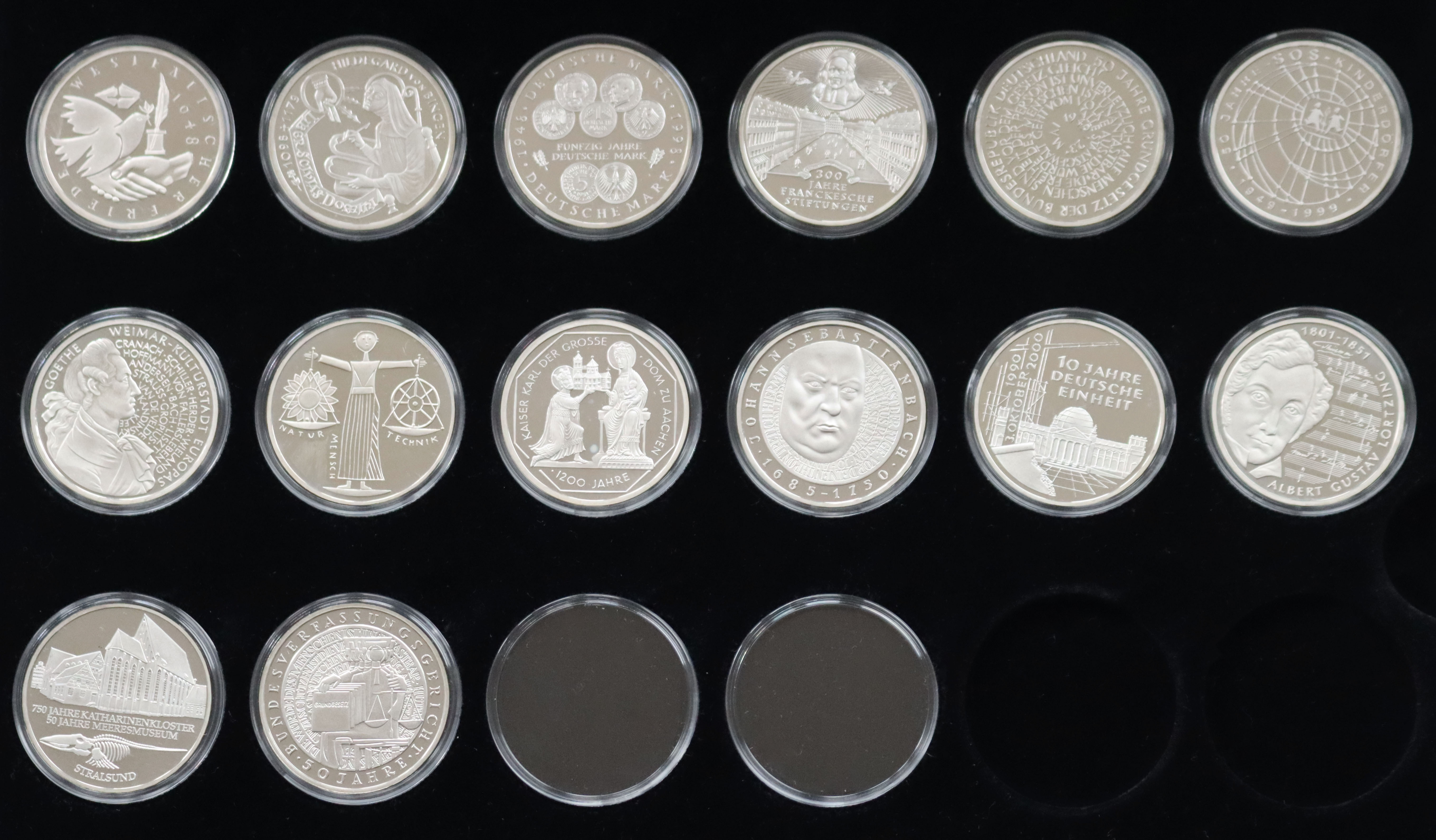 1987-2001, komplette Sammlung der 10 DM Gedenkmünzen der Bundesrepublik in Spiegelglanz-Ausführung