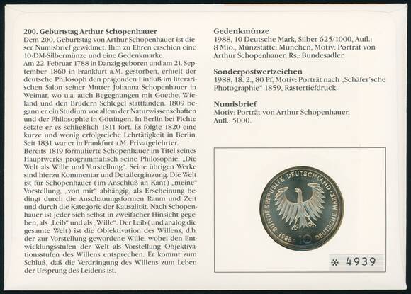 BRD 1988/1988 Numisbrief Arthur Schopenhauer