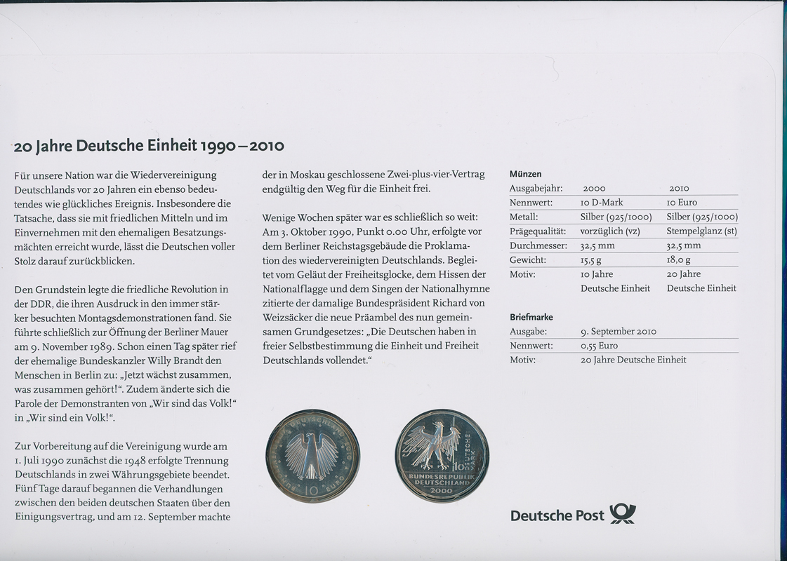 BRD 2000/2010 Numisbrief 20 Jahre Deutsche Einheit