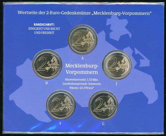 BRD 2007 Serie Bundesländer Mecklenburg-Vorpommern 5 x 2 Euro