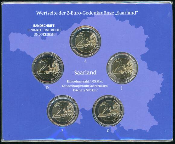 BRD 2009 Serie Bundesländer Saarland 5 x 2 Euro