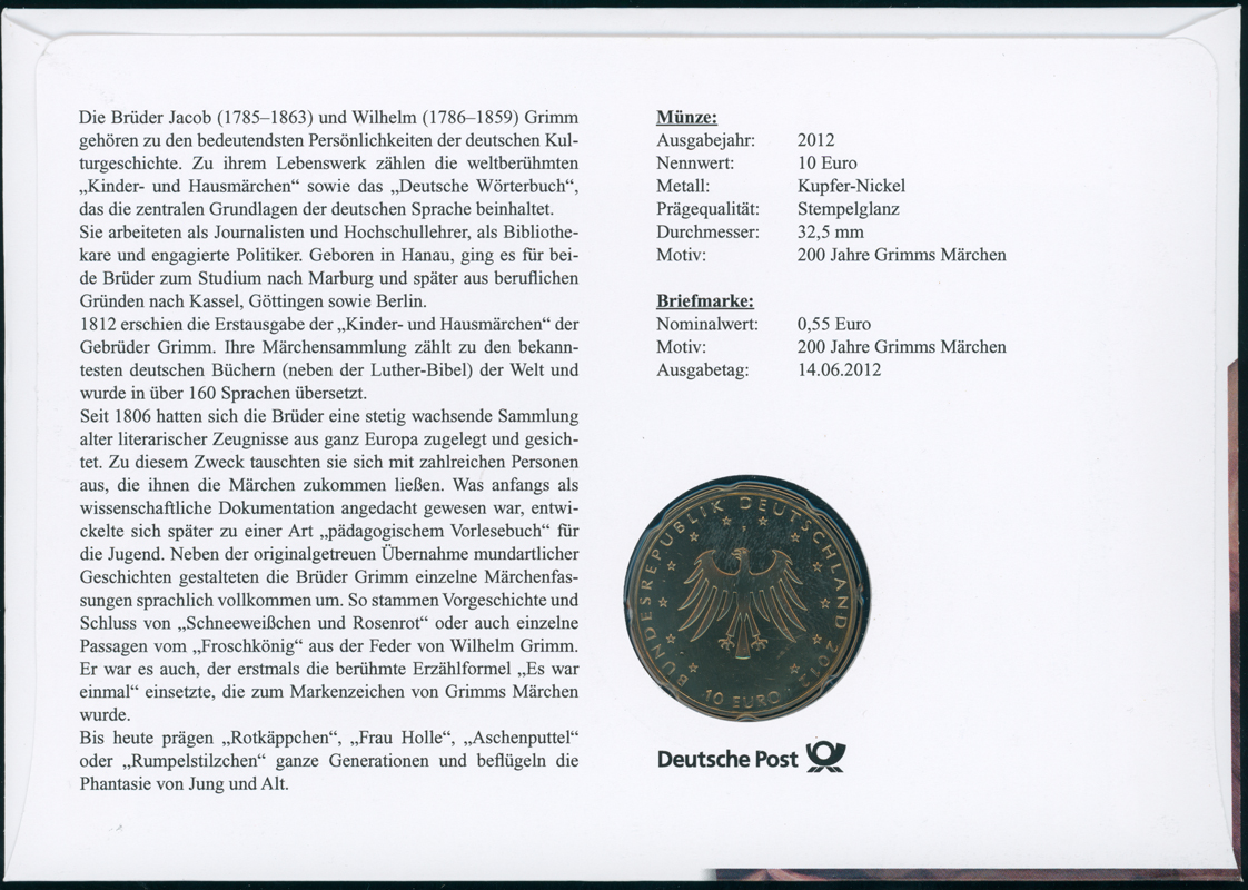 BRD 2012/2012 Numisbrief 200 Jahre Grimms Märchen