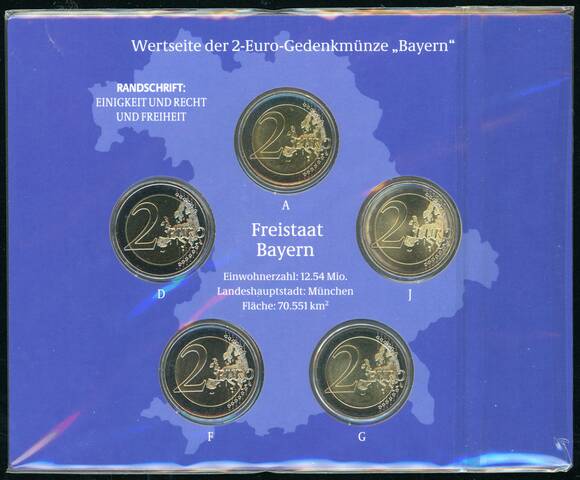 BRD 2012 Serie Bundesländer Bayern 5 x 2 Euro