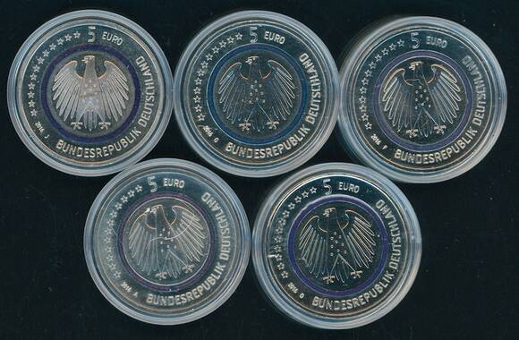 BRD 2016, 5 x 5 Euro Polymer Planet Erde