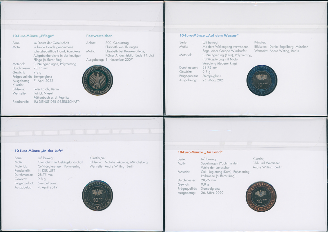 BRD 2019-2022 Lot mit 4 Numisbriefen 10 Euro Polymer