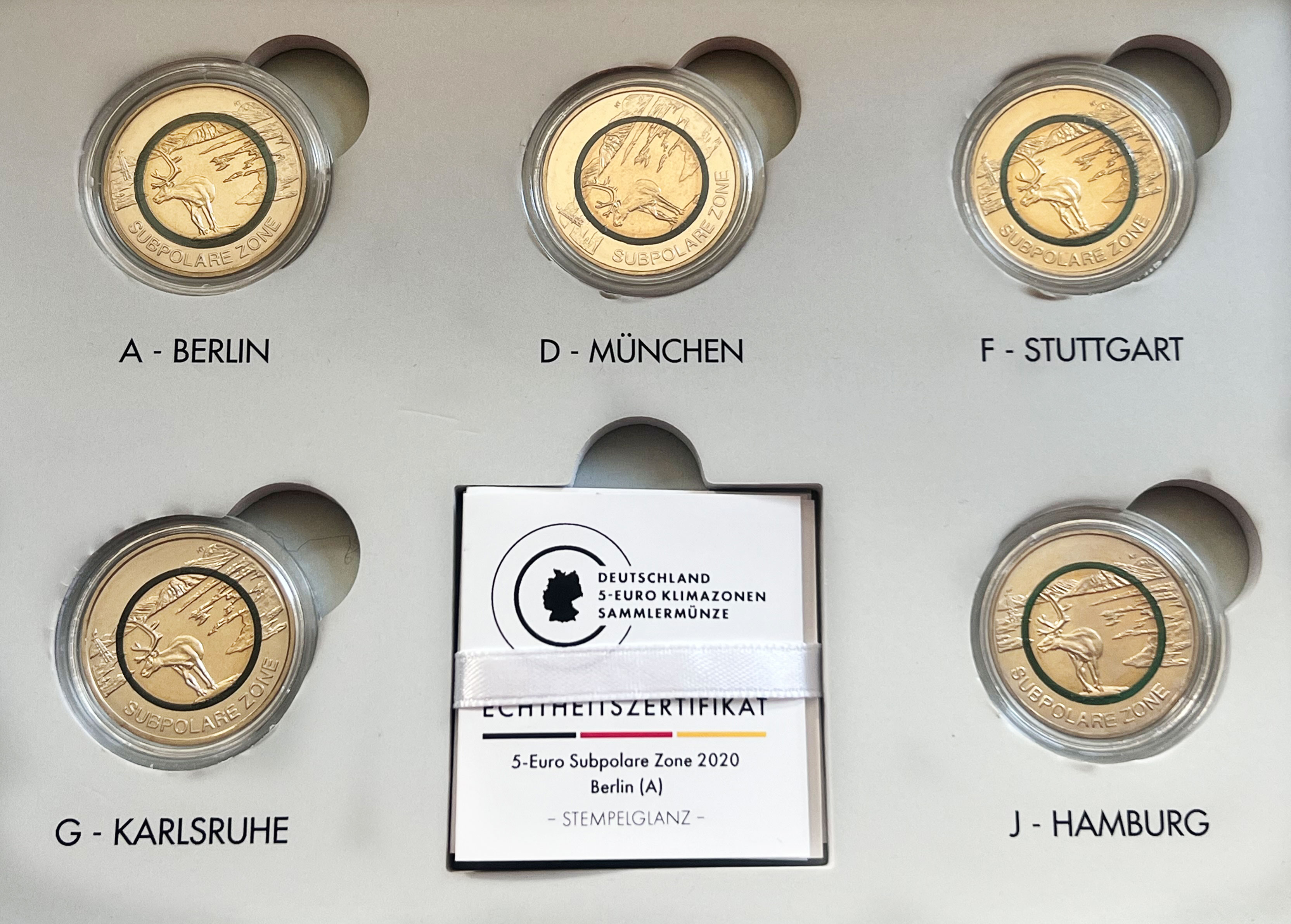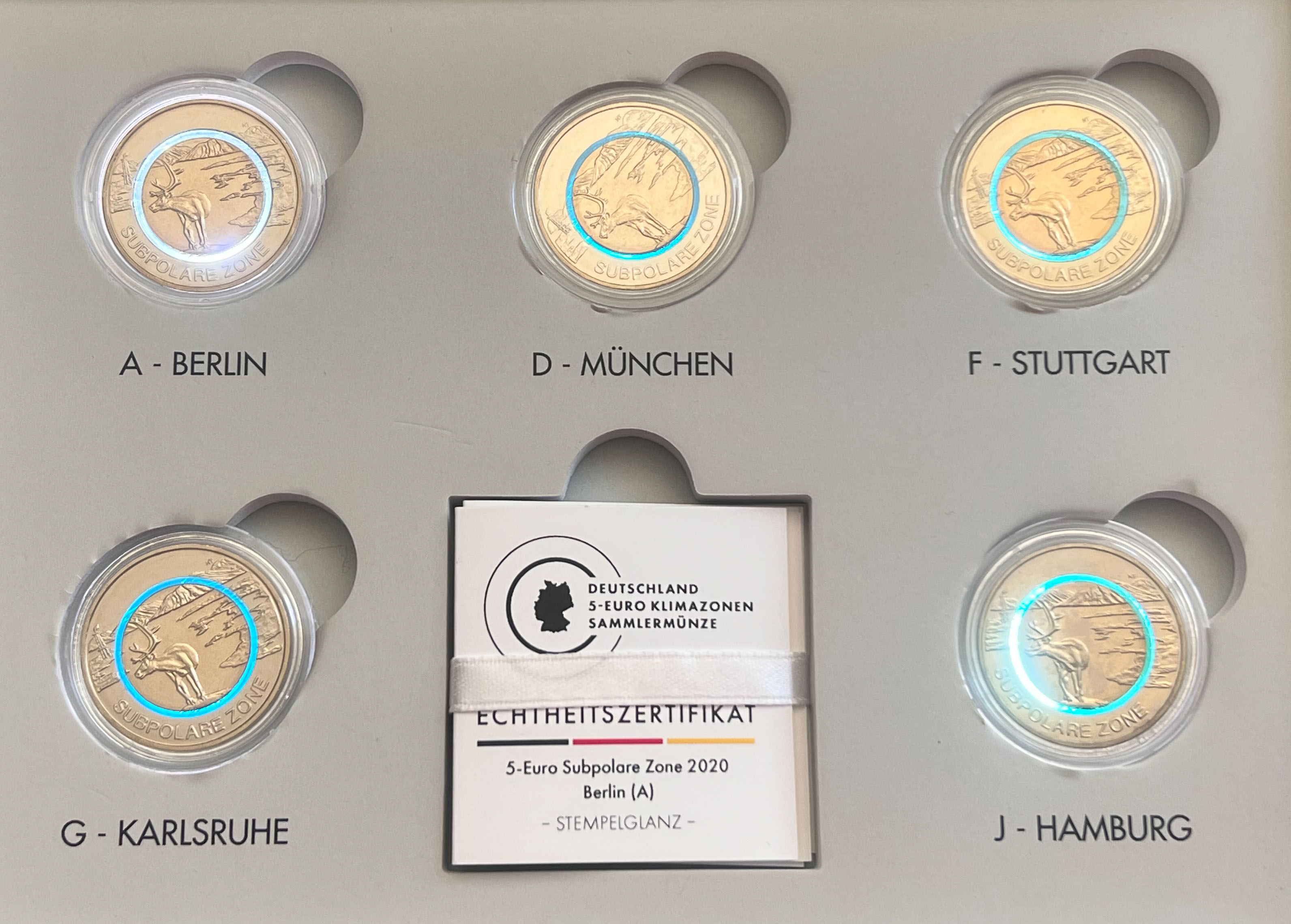BRD 5 x 5 Euro Polymer 2020 Subpolare Zone in Unterlicht-Box