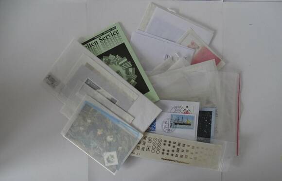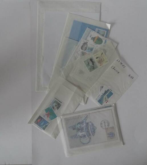 Dazu einige Pergamintaschen mit Abosendungen der Firma Sieger u.a. von China aus 2000er Jahren