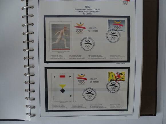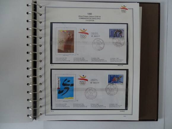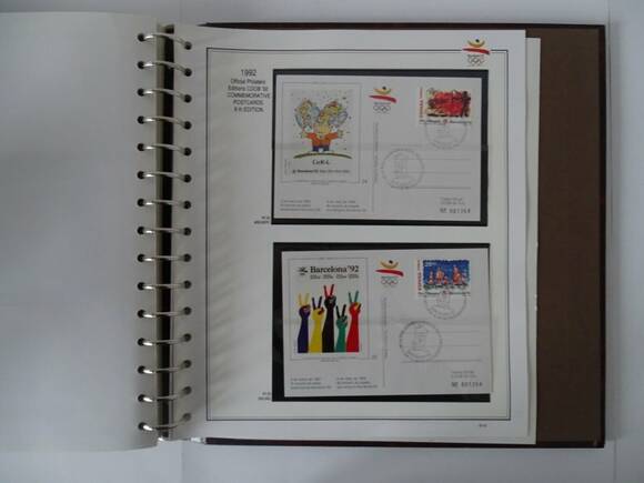 Saubere Motivsammlung Olympische Sommerspiele Barcelona im Ringbinder mit postfrischen Marken, Briefen und Karten
