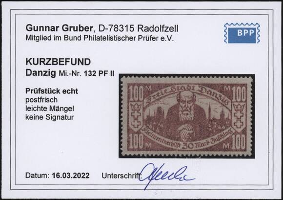 DANZIG 1923 MiNr. 132 II Plattenfehler