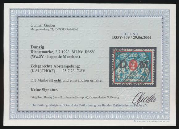 DANZIG DIENST 1923 MiNr. D 35 Y