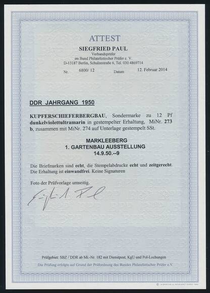 1950, Mansfelder Kupferschieferbergbau, 12 Pfg., dunkelviolettultramarin