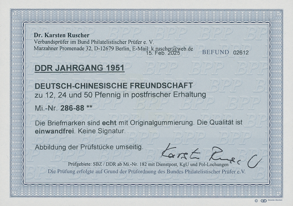 DDR 1951 MiNr. 286-288 Oberrand