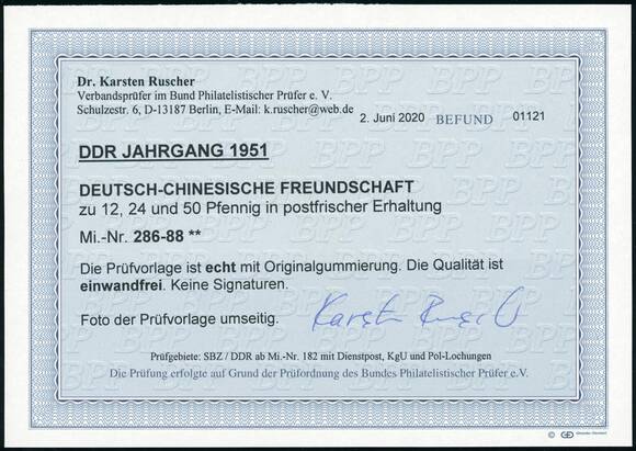 DDR 1951 MiNr. 286-288