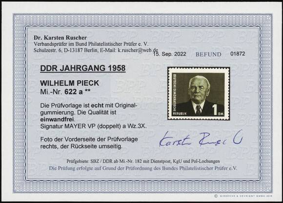 Tadellos postfrisch, Fotobefund Dr. Ruscher