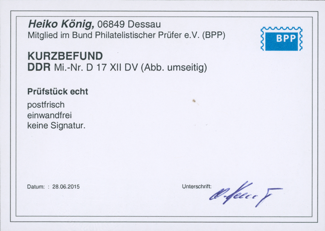 DDR-DIENST MiNr. A 17 x XII DV Druckvermerk