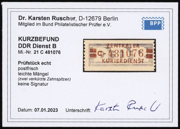 Zwei Zahnspitzen sind winzig verkürzt, siehe Foto, sonst tadellos postfrisches Kabinettstück