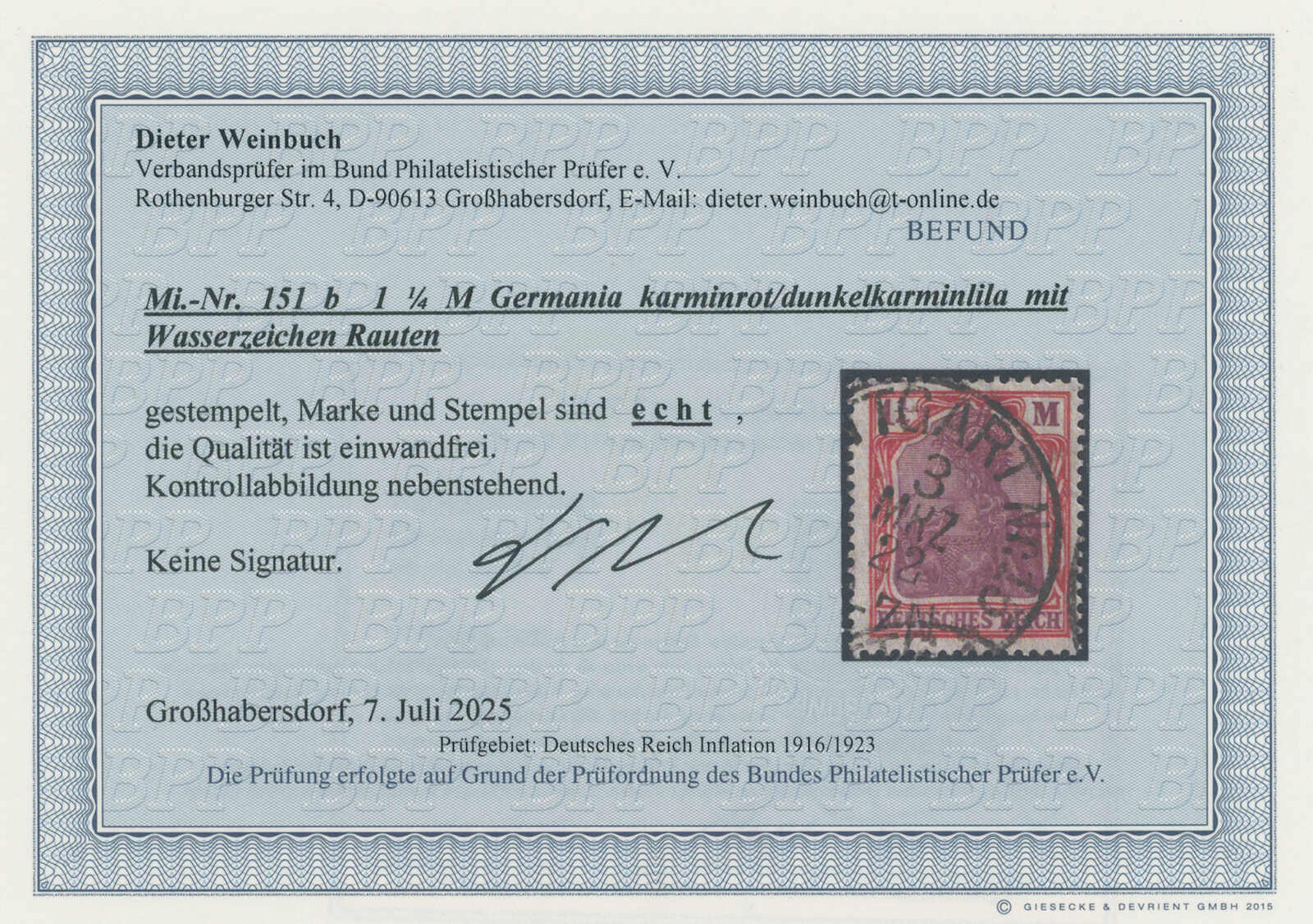 1920, Germania, 1 1/4 Mk., karminrot/dunkelkarminlila