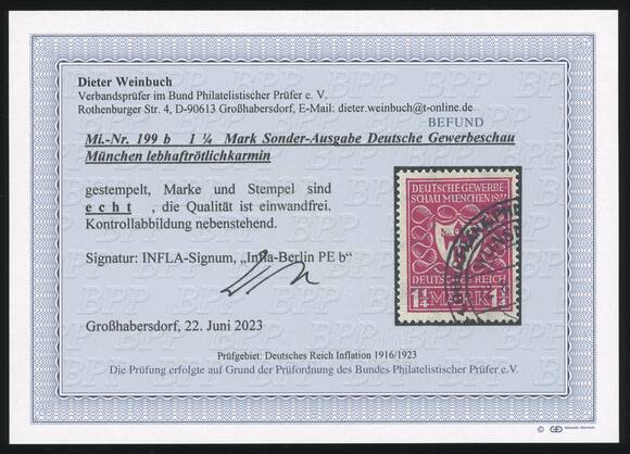 Sehr sauber gestempelt mit SST, Fotobefund Weinbuch