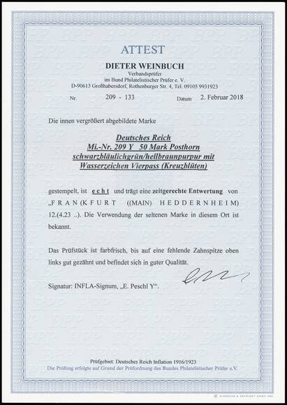 DR 1922 MiNr. 209 P Y Vierpass-Wasserzeichen