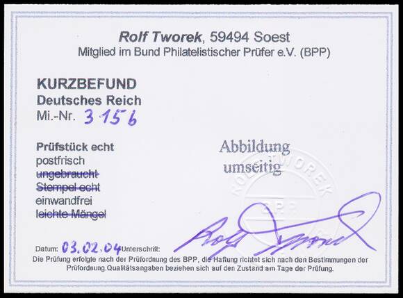 Tadellos postfrisch, Kurzbefund Tworek