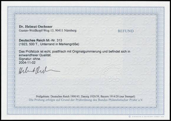 Tadellos postfrisch, Fotobefund Oechsner